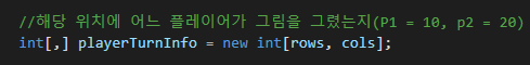 //해당 위치에 어느 플레이어가 그림을 그렸는지(P1 = 10, p2 = 20)