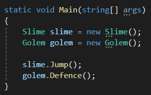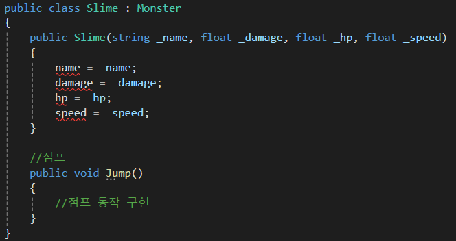 해당 Monster클래스를 활용해 Slime만 만들경우 Slime에 필요한 기능 ex) 점프기능, 높은 회피율