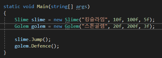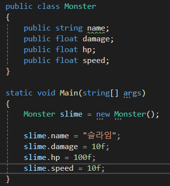 앞서 클래스는 객체를 만들기위한 설계도라고 언급드렸고 해당 클래스를 통해 슬라임이라는