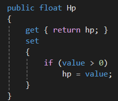 이런식으로 프로퍼티를 활용하면 몬스터의 체력값에 이상한 값이 들어오는것을 막을 수 있습니다.
