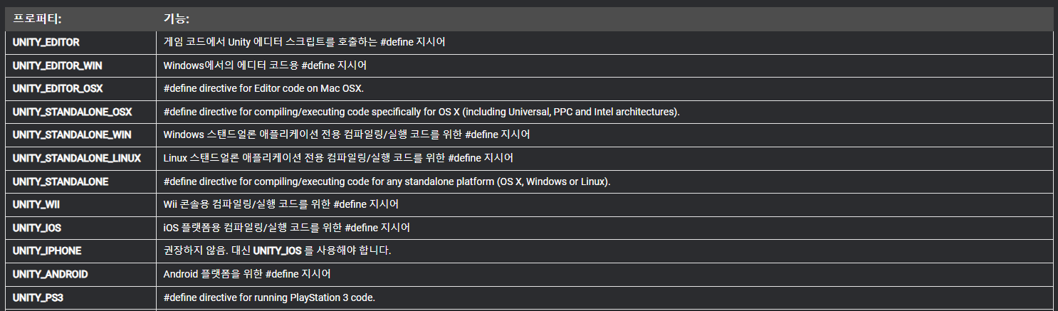 https://docs.unity3d.com/kr/530/Manual/PlatformDependentCompilation.html