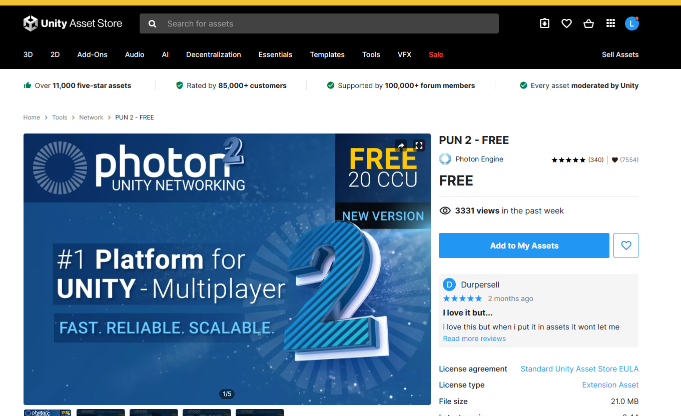 3. 에셋스토어에서 PUN 2 - FREE를 다운로드 한뒤에 프로젝트에 Import를 합니다.