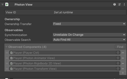 플레이어의 위치를 동기화 하기 위해서는 반드시 Palyer 오브젝트에 Photon View 컴포넌트가 존재해야합니다.