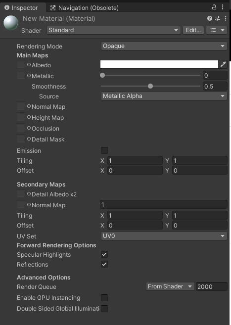 Rendering Mode : 재질감을 표현할 수 있는 옵션