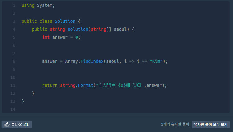 public string solution(string[] seoul) {
