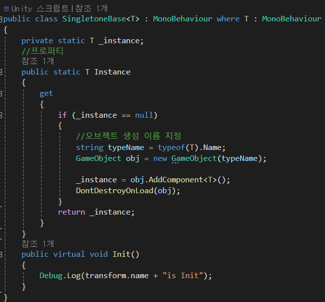 싱글톤 베이스를 만들어두면 매니저 오브젝트들의 유지보수 및 관리가 더 편해집니다.
