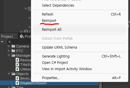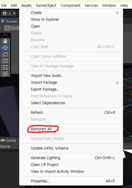 그럴 경우 위처럼 Reimport All을 통해 해결할 수 있습니다.